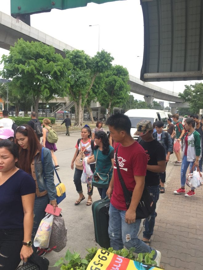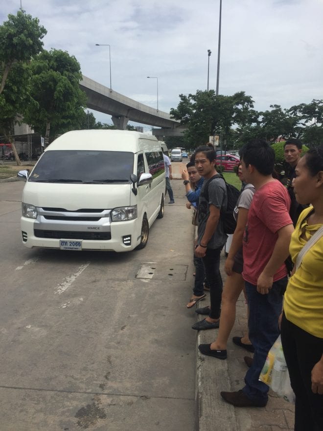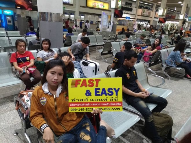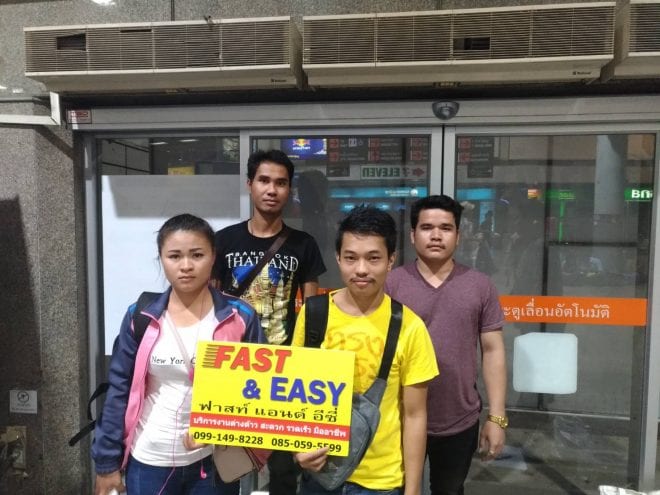บริษัทนำคนต่างด้าวมาทำงานในประเทศ ฟาสท์ แอนด์ อีซี่ ได้นำคนงานไปลงวีซ๋า ที่ด่านหนองคาย เมื่อวันที่ 19 สค 61 โดยนัดเจอกันที่สถานีขนส่งหมอชิตเวลา 12:00 น หลังจากที่เช็คชื่อคนงานเรียบร้อยแล้ว ก็จะพาไปตรวจสุขภาพที่โรงพยาบาลบางประกอก 9 และส่งขึ้นรถโดยสารเพื่อเดินทางไปลงวีซ่าที่เวียงจันทน์ ประเทศลาว การลงวีซ๋าที่เวียงจันทน์ใช้เวลา 1 วัน ทางบริษัทได้จัดเตรียมที่พักไว้ให้เรียบร้อย และรถตู้โดยสารที่ใช้ในการเดินทางตอนอยู่ประเทศลาว หลังจากลงวีซ่าเรียบร้อยแล้ว ก็จะนำคนงานเข้าศูนย์อบรมแรกรับและสิ้นสุด จังหวัดหนองคาย เพื่อทำใบอนุญาตทำงานพร้อมยื่นผลตรวจสุขภาพที่ศูนย์อบรม เมื่อเสร็จเรียบร้อยแล้วทางบริษัทจะดำเนินการส่งคนงานขึ้นรถโดยสารเพื่อส่งถึงนายจ้างโดยสวัสดิภาพ ทางบริษัทดำเนินการให้หมดทุกขั้นตอนนายจ้างไม่ต้องทำอะไรทั้งสิ้น และไม่มีค่าใช้จ่ายใดๆ นอกเหนือจากที่ตกลงกัน หลังจากคนงานกลับมาบริษัทจะทำการแจ้งเข้าให้นายจ้างภายใน 15 วัน เชิญรับชมบรรยากาศได้ครับ